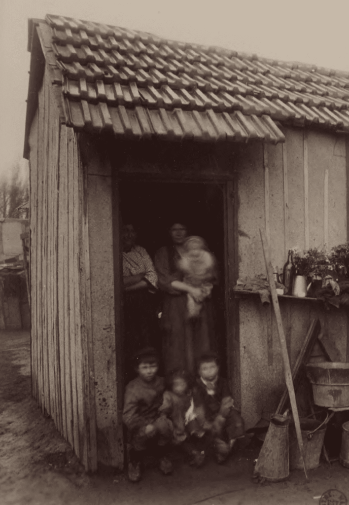 F. V. Cette période correspond aussi au moment où les idées du courant hygiéniste émergent, ciblent des lieux dits inhabitables, et se diffusent d’autant plus. Deux remarques me viennent à propos de cette période qu’on pourrait considérer comme un moment de bascule. D’une part, comment la Zone passe, comme tu l’appelles dans ton livre, de « ceinture noire » à « ceinture verte » ? Et d’autre part, les très belles photographies d’Eugène Atget que tu montres dans ton livre, prises dans la Zone dans les années 1910, me font penser à d’autres, plus connues et prises dans les années 1960, de ce qu’on a appelé le « bidonville de Nanterre ». Il semble donc y avoir une continuité, un glissement dans le vocabulaire utilisé pour qualifier la Zone et la banlieue, qui passent de « bas-fonds » à « bidonvilles ».