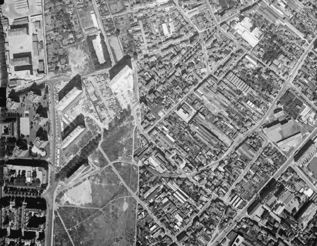 F. V. La Zone devient donc un habitat à la fois refuge et à la fois imposé pour l’ensemble de ces populations. Dans les années 1930, cette bande de terre commence à être investie, pratiquée : c’est un lieu de promenade, il y a des endroits arborés, et un rapprochement se fait entre ce qu’on considère comme « l’air pur du dehors de Paris », et la relation au corps et à son entraînement. Tu expliques par exemple que c’est à cette période que de nombreux stades et espaces sportifs se construisent à la périphérie de Paris. Puis, dans les années 1940 et 1950 et de façon un petit peu plus étonnante, un lien va se construire entre « la nature », l’hygiène, et, finalement, la voiture, avec l’arrivée du périphérique.