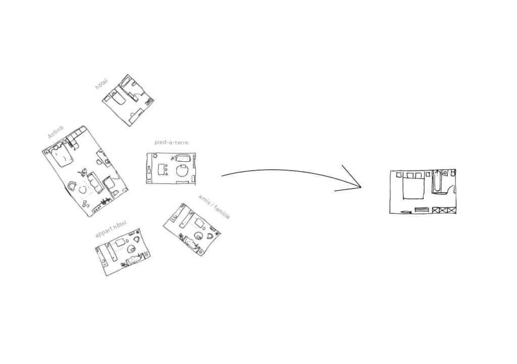 Cette évolution des pratiques nous fait aujourd’hui réaliser que cette question initiale centrée sur le logement est très liée à l’organisation du travail et donc des surfaces de bureaux et de leur localisation. La question se pose pour les entreprises, et pour ces employé·es délocalisé·es : comment venir et dormir près de son bureau,pour ne pas rajouter du temps de transport à l’échelle de la journée ? Deux solutions gérées se sont mises en place en parallèle de l’étude. Une première propose des logements fl exibles à des professionnel·les en situation de mobilité, dans des appartements partagés par des salarié·es mobiles, et/ou une offre destinée aux entreprises souhaitant regrouper leurs employé·es en situation de mobilité. Dans les deux cas, l’entreprise prend en charge les nuitées, d’où son intérêt à en faire baisser les coûts.Elle s’adresse également à des intermédiaires qui ont senti le filon et se sont développé·es en achetant ou sous-louant des grands appartements transformés en coliving plus luxueux que la version étudiante. Leur objectif affiché est la rentabilité de ces investissements immobiliers.Comment améliore-t-elle les rendements ? En permettant aux propriétaires des murs de pratiquer des loyers supérieurs à l’encadrement des loyers ? Un modèle qui ne respecterait donc pas les règles en vigueur à Paris. Ou simplement en garantissant des revenus fixes sur des baux de six ans, alors que le prix de l’occupation facturé aux locataires de passage augmente ou réagit à un marché de la demande ? Dans ce cas, comme noté par l’étude de l’APUR de 2022, on ne peut que déplorer que ce modèle contribue « à la transformation de résidences principales en logements dont les usages se rapprochent de ceux d’un hôtel ou de locations de courte durée », et donc en réduisant encore une ressource que notre étude initiale souhaite partager. L’autre piste, une solution plus agile en gestion,propose de mettre directement en relation des travailleur·ses qui cherchent un pied-à-terre avec des propriétaires habitant·es ayant une ou plusieurs chambres à louer, leurs enfants ne résidant plus au sein du foyer par exemple. Cette solution apparemment artisanale peut facilement être industrialisée par la création de plateformes locales ou nationales faisant se rencontrer offres et demandes postées par les deux parties. Le partage du logement dans le temps – et donc l’intensification de son usage – peut générer une augmentation de sa rentabilité et c’est aujourd’hui ce qui motive le plus ses « entrepreneur·ses » . Pour être bénéfique, la mutualisation doit être encadrée, gérée et développée de manière vertueuse. Propriétaires et locataires doivent y trouver leur compte. Le loge- ment à temps partiel nécessite des garde-fous pour éviter l’augmentation des logements « de passage » et leurs loyers, dans la ville de Paris.