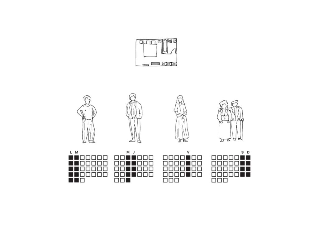 Part-Time Parisiens prend donc racine dans ces bouleversements, et tente de concilier de nouvelles aspirations de vies avec l’évolution du travail encours. Il s’agit de penser un logement sous le prisme de l’économie collaborative pour loger des personnes qui vivent dans une ville et travaillent dans une autre, celleux qui ont un besoin de revenir régulièrement dans une ville pour des raisons familiales, de santé, culturelles ou de formations.Le principe est une division de l’occupation d’un logement dans le temps, on est donc chacun·e chez soi, chacun·e son tour. Chaque personne s’engage à venir régulièrement, une ou plusieurs nuits consécutives par semaine. Les autres jours, le logement accueille une autre personne, qui revient elle aussi en suivant un calendrier bien précis. Le logement est ainsi occupé tous les soirs ou presque de la semaine et éventuellement les week-ends. Contrairement à la colocation, le partage se fait dans le temps, non dans l’espace. Ce n’est pas ici en proposant un nouvel agencement ou un nouveau plan de logement que nous contribuons à le réinventer, mais en proposant une nouvelle manière de le partager.